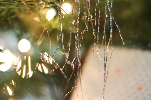 He was wearing a big o'l smile, ear to ear, a smile so big and one I've only seen on him a few times. He smiles a lot, but I'm talking Joker big. He was so excited to bring home a tree. He said we have to have a tree for Lois's first Christmas (well technically her second, but she was just tiny last year, and we weren't here for Christmas anyway). We put the tree in the stand, and I got out our little ornament box and decorated the tree. It looks so beautiful. I love it! It doesn't even really matter that the ornaments are a little sparse--with some tinsel, candy canes, and christmas cards stuffed in the tree (a family tradition), it looks just right. And I think I'll go to the flea market this weekend to see if I can find a few more vintage ornaments.